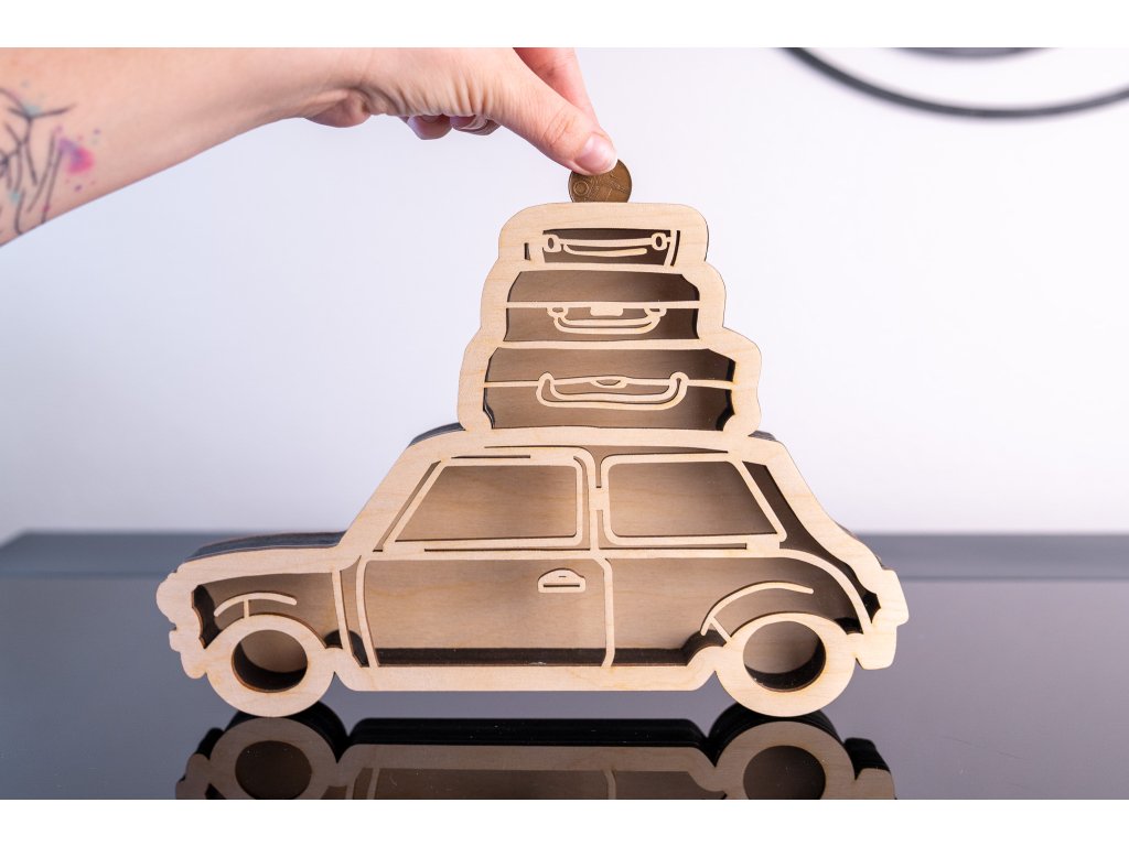 Představujeme vám kasičku Auto s kufry – perfektního partnera pro ty, kteří sní velké a chtějí šetřit na velké cíle. Tato kasička nabízí díky své nástavbě prostor pro mnohem větší úspory, ideální pro plánování dovolené, nového auta nebo jakéhokoli vašeho srdcového přání. Její unikátní design nejenže motivuje k pravidelnému šetření, ale také slouží jako neustálá vizuální připomínka vašich cílů. K dispozici s možností personalizace, kasička Auto s kufry se stane nejen praktickým, ale i stylovým doplňkem vašeho domova.